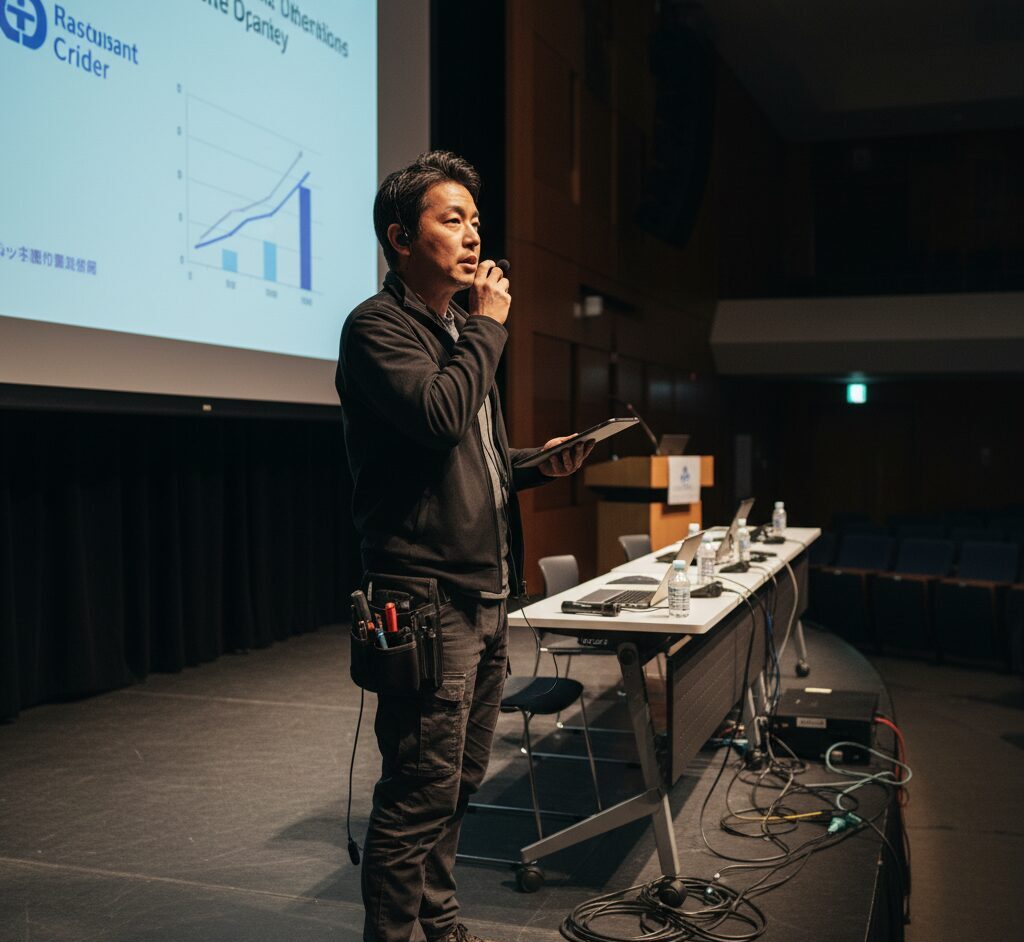 私はこれまで約20年という長きにわたり、業務委託の形で、関東圏内の大規模教育機関の施設ホールの管理運営を、外部の専門スタッフと連携しながら専門的に担ってまいりました。